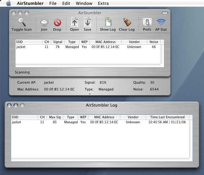 AirStumbler ist ein Werkzeug zur WLAN-Analyse. Neben dem Entdecken von WLANs ist es möglich, sich direkt in gefundene, offene WLAN Netze einzuloggen.