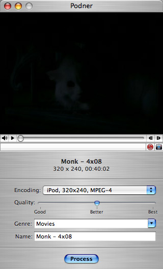 Podner ist ein Programm mit dem man auf einfache Art und Weise Filme und Videoclips für den iPod Video konvertieren kann. Ohne gültige Seriennummer bietet das Programm allerdings nur einen sehr eingeschränkten Funktionsumfang.